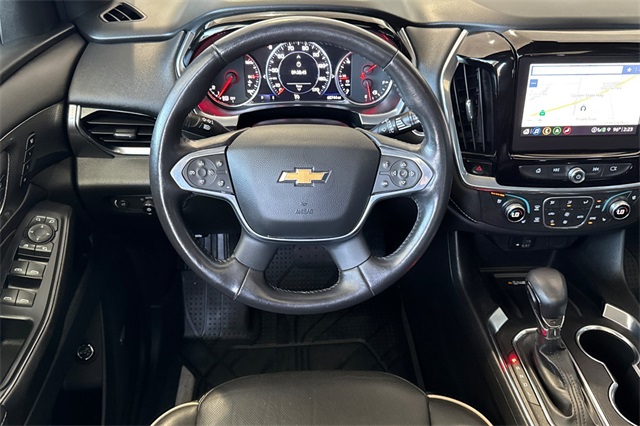 Recent Arrival! Clean CARFAX. CARFAX One-Owner. Traverse Premier, 4D Sport Utility, 3.6L V6 SIDI VVT, 9-Speed Automatic, AWD, Cherry Red Tintcoat, Jet Black Leather, 10 Speakers, 1st & 2nd Row All-Weather Floor Liner (LPO), 3.49 Axle Ratio, 3rd Row All-Weather Floor Liner (LPO), 3rd row seats: split-bench, 4-Wheel Disc Brakes, 6-Way Power Front Passenger Seat, 8-Way Power Driver Seat Adjuster, ABS brakes, Air Conditioning, Alloy wheels, AM/FM radio: SiriusXM with 360L, Apple CarPlay/Android Auto, Auto High-beam Headlights, Auto-dimming door mirrors, Auto-dimming Rear-View mirror, Automatic temperature control, Bose Premium 10-Speaker Audio System Feature, Brake assist, Bumpers: body-color, Compass, Delay-off headlights, Driver door bin, Driver vanity mirror, Dual front impact airbags, Dual front side impact airbags, Dual SkyScape 2-Panel Power Sunroof, Electronic Stability Control, Emergency communication system: OnStar Guidance, Floor Liner Package (LPO), Four wheel independent suspension, Front anti-roll bar, Front Bucket Seats, Front Center Armrest, Front dual zone A/C, Front License Plate Bracket Mounting Package, Front Passenger 2-Way Power Lumbar, Front reading lights, Fully automatic headlights, Garage door transmitter, Heated 2nd Row Outboard Position Seats, Heated door mirrors, Heated Driver & Front Passenger Seats, Heated front seats, Heated rear seats, Heated Steering Wheel, Heated steering wheel, Heavy-Duty Cooling System, Hitch Guidance w/Hitch View, Illuminated entry, Integrated Cargo Liner (LPO), Leather steering wheel, Low tire pressure warning, Memory seat, Navigation System, Occupant sensing airbag, Outside temperature display, Overhead airbag, Overhead console, Panic alarm, Passenger door bin, Passenger vanity mirror, Perforated Leather-Appointed Seat Trim, Power door mirrors, Power Driver Lumbar Control, Power driver seat, Power Liftgate, Power passenger seat, Power steering, Power windows, Preferred Equipment Group 1LZ, Premium audio system: Chevrolet Infotainment 3 Plus, Radio data system, Radio: Chevrolet Infotainment 3 Plus System w/Navi, Rear air conditioning, Rear anti-roll bar, Rear Park Assist w/Audible Warning, Rear reading lights, Rear window defroster, Rear window wiper, Remote keyless entry, Roof rack: rails only, Security system, SiriusXM w/360L, Speed control, Speed-sensing steering, Spoiler, Steering wheel memory, Steering wheel mounted audio controls, Tachometer, Telescoping steering wheel, Tilt steering wheel, Traction control, Trailering Assist Guidelines, Trailering Equipment, Trip computer, Turn signal indicator mirrors, Variably intermittent wipers, Ventilated Driver & Front Passenger Seats, Ventilated front seats, Voltmeter, Wheels: 20" Metallic Machined-Face Aluminum. Cherry Red Tintcoat 3.6L V6 SIDI VVT 9-Speed Automatic AWD