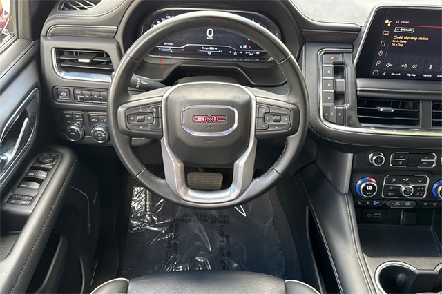 Recent Arrival! Clean CARFAX. CARFAX One-Owner. Back Up Camera, Heated Seats, BlueTooth, Smartphone Integration, Power Lift Gate, Power Driver's Seat, Satellite Radio, 3rd Row Seat, Towing Pkg, 4x4, Push Button Start, Extended Warranty Available, Yukon SLT, 4D Sport Utility, EcoTec3 5.3L V8, 10-Speed Automatic with Overdrive, 4WD, Volcanic Red Tintcoat, Black Leather, 12-Way Power Seat Adjusters, 2 Presets For Power Driver Seat, 2nd Row Manual-Folding Bucket Seats, 3.23 Rear Axle Ratio, 3rd row seats: split-bench, 4-Wheel Disc Brakes, 9 Speakers, ABS brakes, Air Conditioning, Alloy wheels, AM/FM radio: SiriusXM with 360L, AM/FM Stereo, Apple CarPlay/Android Auto, Auto High-beam Headlights, Auto-dimming Rear-View mirror, Automatic Emergency Braking, Automatic temperature control, Bodyside moldings, Bose 9-Speaker Stereo Audio System Feature, Brake assist, Bright Chrome Bodyside Moldings, Bright Front & Rear Door Sill Plates, Bumpers: body-color, Chrome Door Handles w/Body-Color Strip, Compass, Delay-off headlights, Deleted 3 Years of OnStar Remote Access, Driver door bin, Driver vanity mirror, Dual front impact airbags, Dual front side impact airbags, Electronic Stability Control, Emergency communication system: OnStar and GMC connected services capable, Following Distance Indicator, Forward Collision Alert, Four wheel independent suspension, Front & Rear Park Assist, Front anti-roll bar, Front Bucket Seats, Front Center Armrest, Front dual zone A/C, Front fog lights, Front Pedestrian Braking, Front reading lights, Fully automatic headlights, Garage door transmitter, Hands-Free Power Programmable Rear Liftgate, Heated door mirrors, Heated Driver & Front Passenger Seats, Heated front seats, Illuminated entry, Inside Rear-View Auto-Dimming Mirror, IntelliBeam Automatic High Beam On/Off, Lane Change Alert w/Side Blind Zone Alert, Lane Keep Assist w/Lane Departure Warning, License Plate Front Mounting Package, Low tire pressure warning, Memory seat, Navigation System, Occupant sensing airbag, Outside temperature display, Overhead airbag, Overhead console, Panic alarm, Passenger door bin, Passenger vanity mirror, Perforated Heated & Ventilated Dr & Frt Pass Seats, Perforated Leather-Appointed Seating, Power door mirrors, Power driver seat, Power Liftgate, Power passenger seat, Power steering, Power windows, Preferred Equipment Group 4SA, Premium Smooth Ride Suspension, Rain sensing wipers, Rear air conditioning, Rear anti-roll bar, Rear Cross Traffic Alert, Rear reading lights, Rear seat center armrest, Rear window defroster, Rear window wiper, Remote keyless entry, Roof rack: rails only, Safety Alert Seat, Security system, SiriusXM w/360L, Speed control, Speed-sensing steering, Split folding rear seat, Spoiler, Steering wheel mounted audio controls, Tachometer, Telescoping steering wheel, Tilt steering wheel, Traction control, Trip computer, Universal Home Remote, Variably intermittent wipers, Ventilated front seats, Voltmeter, Wheels: 20" x 9" 6-Spoke Polished Aluminum, Wireless Charging. Volcanic Red Tintcoat EcoTec3 5.3L V8 10-Speed Automatic with Overdrive 4WD